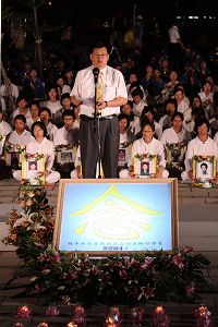 烛光悼念会最后在“写给七二零”悼念词的朗诵中,以及现场合唱“请坐在我身边”悠扬歌声中圆满落幕。