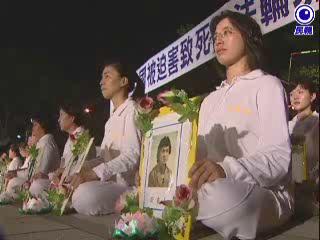 和平歌声,象征全球法轮功的心声,上千名学员手持蜡烛在信义广场打坐,以安静的力量,抗议中共政权十年来对法轮功学员的残酷迫害,醒目的抗议白布条,围绕在台北101大楼周遭,学员手上的每张照片,代表着遭中共当局迫害致死的学员,罹难者人数已经多达三千二百九十四人,而这场静坐抗议的活动,不但有许多学者站出来力挺,民进党也派代表来声援,不谈政治,只谈人权,法轮功学员们,希望世人认清中共政权的恶行恶状。