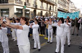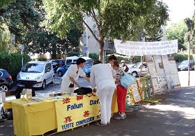 ![]() 在中国驻马赛中领馆前讲真相活动 |
