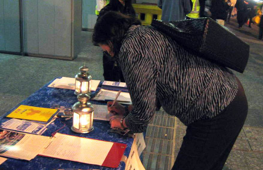 法轮功学员表示,十年前的七月二十日,中共政权开始全面血腥镇压法轮功,千千万万的法轮功学员遭遇惨无人道的酷刑折磨,甚至失去了生命,只为追寻“真、善、忍”真理。这些善良无辜的学员被迫害得家破人亡,妻离子散。十年来,法轮功学员不畏暴力和艰辛,风雨无阻的向世人讲清法轮功被迫害的真相。他们的善良与慈悲,唤醒了无数人的良知善念。