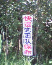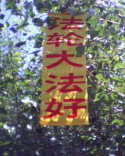 东北某城市大法弟子于2009年7月19日走出来证实大法,为救度众生,天灭中共,挂出“法轮大法好”,“真善忍好”“快退党团队保命”等许多条幅。