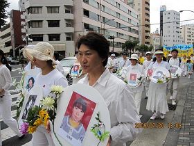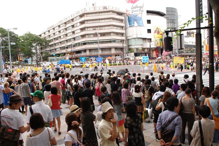 ![]() 从位于繁华市区的惠比寿公园到青山,法轮功学员在东京游行。 |