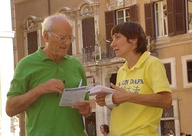 【明慧网二零零九年七月二十四日】二零零九年七月十九日及二十一日,意大利法轮功学员分别前往中国驻罗马使馆和意大利国会门前举行活动,谴责中共对法轮功长达十年的残酷,纪念被迫害致死的中国大陆同修,并呼吁意大利政府认清中共的邪恶本质,帮助结束这场史无前例的浩劫。
