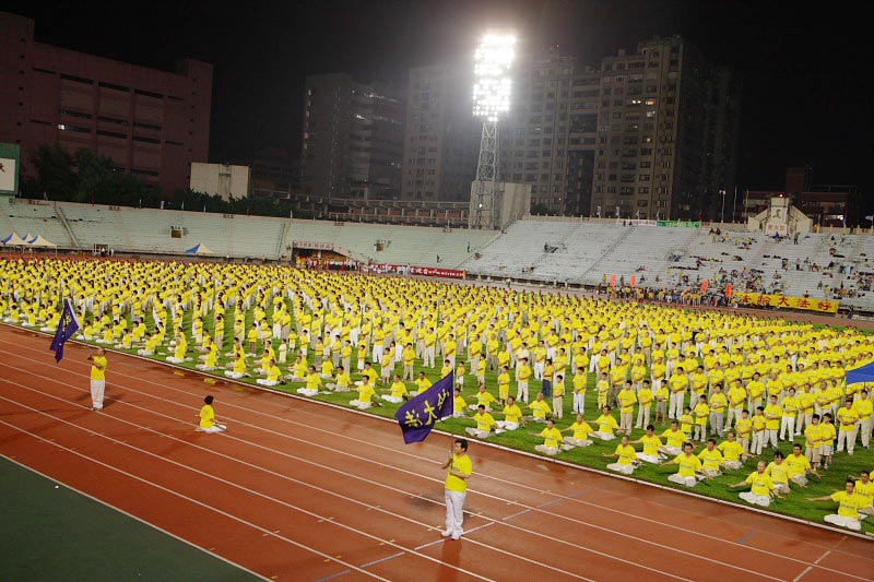 三年前的同一场地,在台北市立体育场(台北田径场前身)为了二零零九年台北听障奥运会,即将息灯改建之际,二千多位法轮功学员作为唯一的受邀团体,表演法轮功五套功法,其优美且整齐划一的动作,令主办单位台北体育总会饶主委印象深刻,因此三年后再一次邀请法轮功团体参与这个有意义的活动。