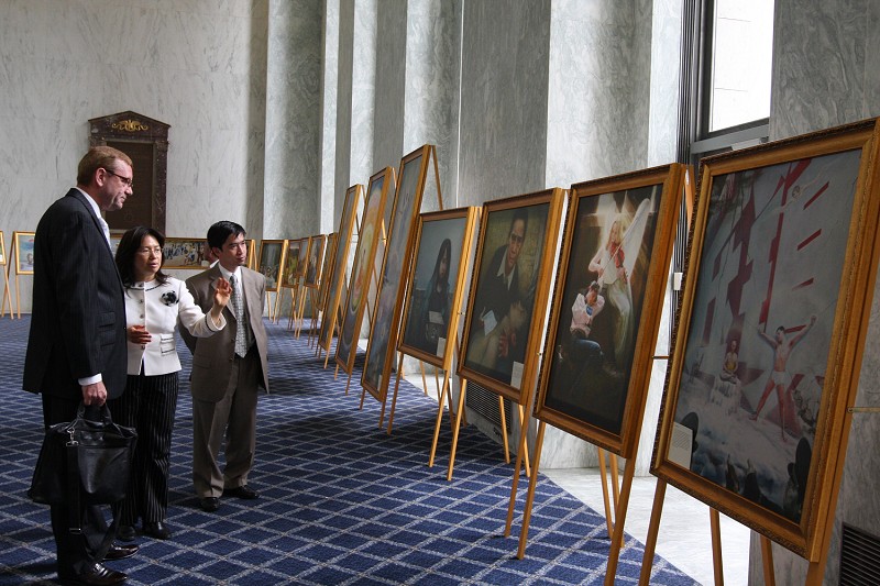 据这次国际美展主办方的负责人张女士介绍,两天来国会大楼里前来观看美展的要员很多,都对美展揭示的内涵,特别是法轮功遭受的残酷迫害感到非常震撼。