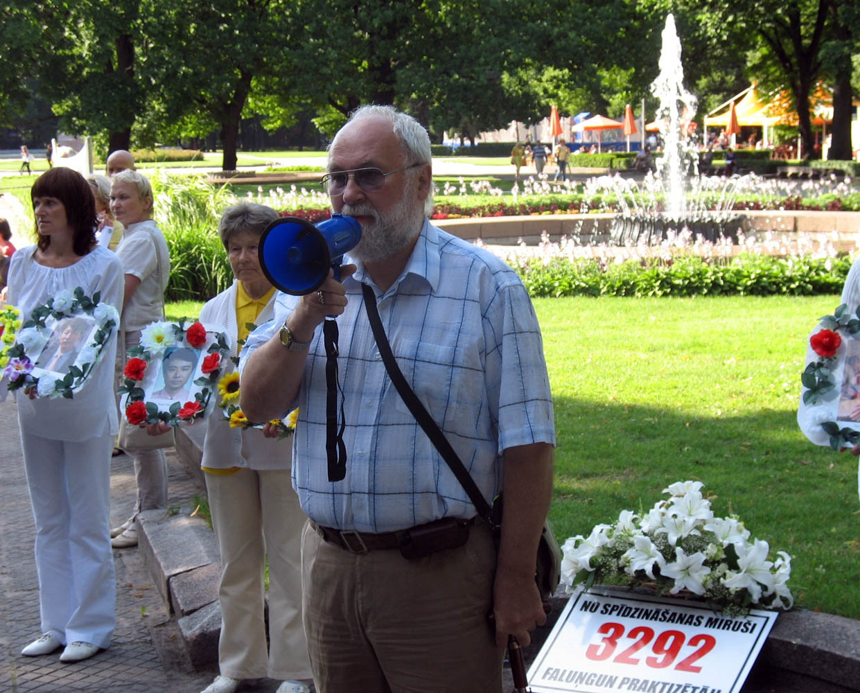 上午九点,法轮功学员来到中共驻拉脱维亚使馆前抗议,并集体炼功。中午,学员们在首都里加的市中心举行集会,呼吁善良的人们帮助制止中共对法轮功持续十年的迫害。很多里加市民了解了真相,表达了对因坚持信仰而遭受中共迫害的法轮功修炼者的支持。