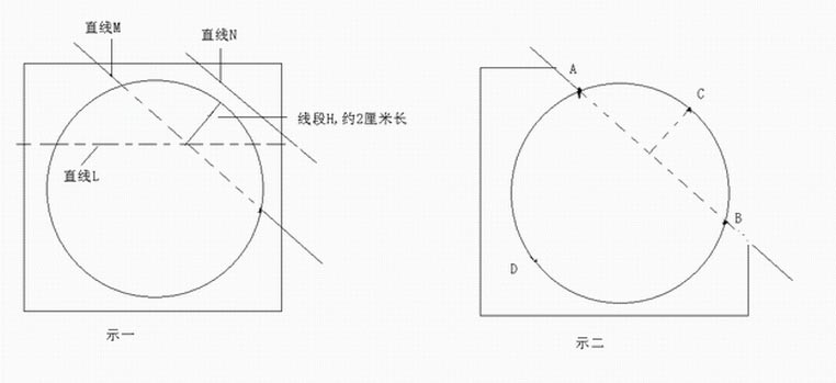 三) 如图示一。沿直线N,用剪子剪掉一角;再把衬纸撕开沿直线M向后折叠,图中线段H约2厘米左右,不求精确,用目测大致2厘米就可以了。笔者原来的方法是沿 直线M用小刀裁掉撕开的衬纸,后借鉴网上同修的做法,只是向后折叠压紧,好处是在与光盘边沿对准时,有一点间隔,不用担心还未对准时就粘住了,使操作更轻 松些;裁掉直线N,是不让间隔过大。有时,不在边角处裁剪,直接沿图示一中直线L,撕开衬纸向后折叠也行,其要领基本相同。
