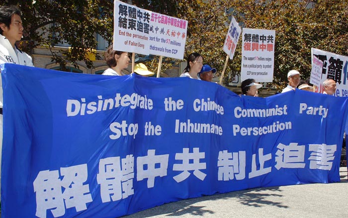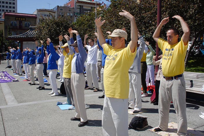 二十五日上午,法轮功学员首先在旧金山中国城花园角广场炼功,之后举行集会。十几位人士讲述了十年来中共对法轮功学员的残酷迫害。同时呼吁中国同胞认清中共的本质,退出中共的党、团、队组织。