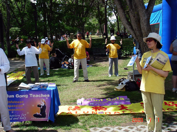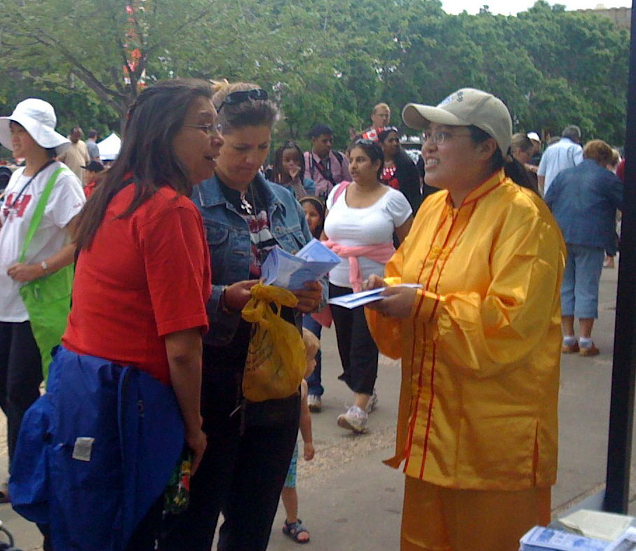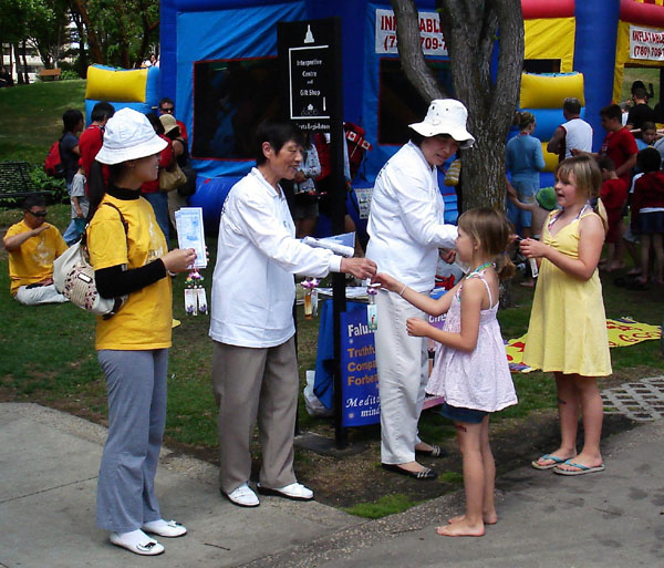 ![]() 埃德蒙顿法轮功学员加拿大国庆日举办活动,向人们介绍法轮大法。 |