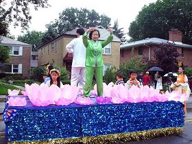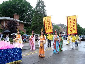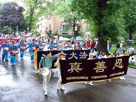 ![]() 二零零九年七月四日, 法轮功学员参加埃文斯敦的美国独立日游行。 |