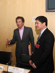 ![]() 雅克•朗部长和法国法轮大法学会主席唐汉龙 |