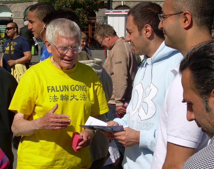 在了解法轮功是什么和法轮功被中共迫害的真相后,一些人萌生了要学功的念头。有两位丹麦妇女与学员交谈了很长时间,签名后并表示对法轮功很感兴趣,临走前记下了炼功地点和时间。