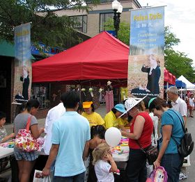 ![]() 麻州中秋节庆上,介绍法轮功的摊位备受欢迎。 |