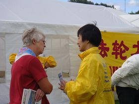 “欢迎你们来这里介绍法轮功,我是做健康食品工作的,对有关健康方面的事情很感兴趣。”一位女士高兴地说。在斯基沃市,很多人是第一次听到法轮功。
