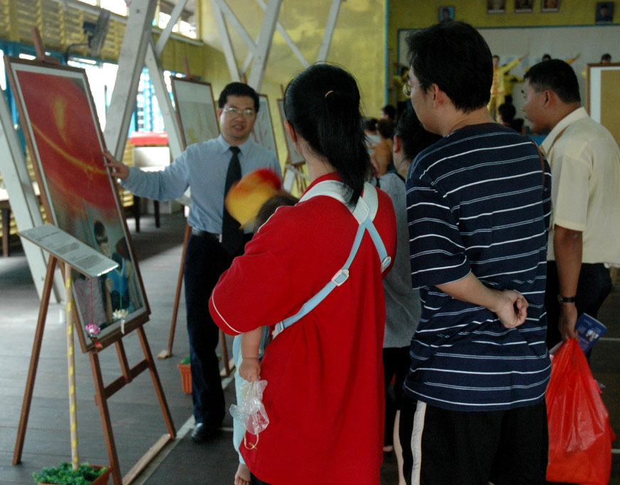 上午九时,美展一开始就吸引了许多吉胆岛老前辈前来观赏。吉胆岛的导游们在得知这难得的美展后,陆续引导了来自国内外的游客前来观赏,其中包括香港、台湾、菲律宾、印尼以及新加坡等地的游客。