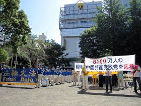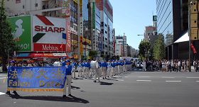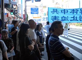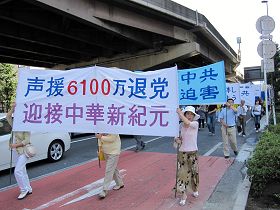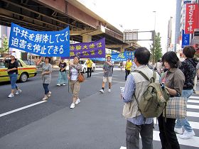 在一个多小时的游行中,不断通过扩音器向日本民众讲述中共对中国人民犯下的罪恶,尤其是对法轮功修炼团体的灭绝人性的迫害,呼吁人们关注中国的现状,声援中国人摆脱中共的三退大潮。