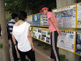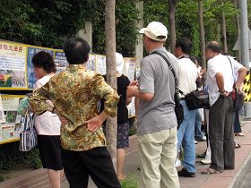 大陆游客围观真相展板内容,希望从中了解被掩盖的事实现况