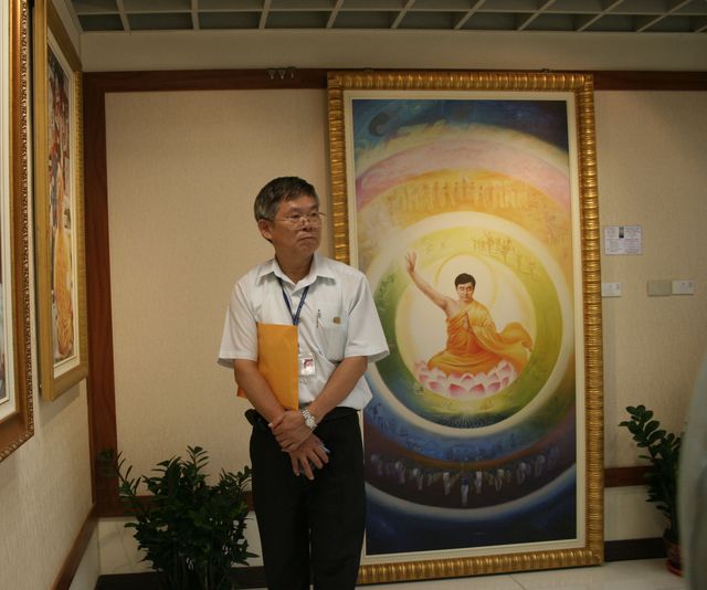 邀请刘教授参观美展的是牙医专科覃医师,她表示:“上次参观美展可惜只观赏了一半,这次终于可以从头到尾仔细欣赏。我正开始在学炼法轮功,上次在士林官邸对大陆游客讲述法轮功真相时,刘教授很有正气支持我们,并给了我名片,这次我邀请刘教授一起来参观,没想到他就来了。”