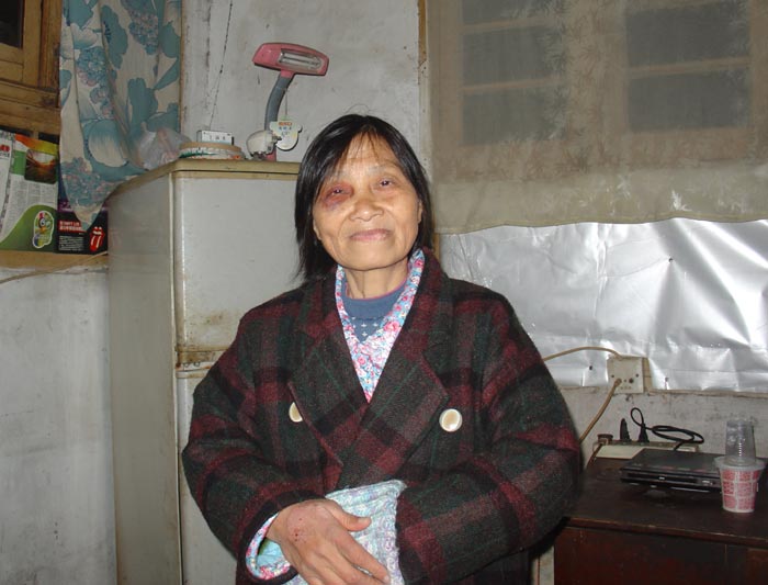 康瑞其今年六十岁。这里有两张康瑞其的照片,左边一张是十年前康瑞其在她五十岁生日时拍的。那时的康瑞其,因为修炼法轮功而摆脱了几十年的病痛折磨,生活充满信念与喜悦,照片中她意气风发。而现在,右边这位又黑又瘦的老妪,很难和旧照中的康瑞其联系起来。虽然镜头前她仍然笑着,但看着让人心中有种说不出的酸楚。仅仅十年,究竟怎样的遭遇让她变化如此?