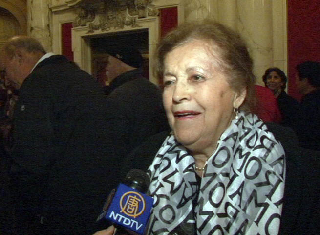 曾在智利担任歌剧《蝴蝶夫人》(Madama Butterfly)主角二十年的优拉荷拉说,今天听到神韵艺术团歌唱演员们的声音让她直流眼泪。