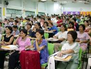 ![]() 屏东县内埔乡东宁国小举办为期五天的法轮大法研习营,一百四十多位教师们专心听讲 |