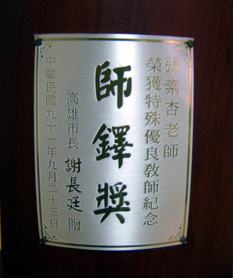 ![]() 张素杏获高雄市特殊优良教师(师铎奖)殊荣 |