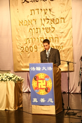 ![]() 法轮功学员在Tel-Sheba市教功 |