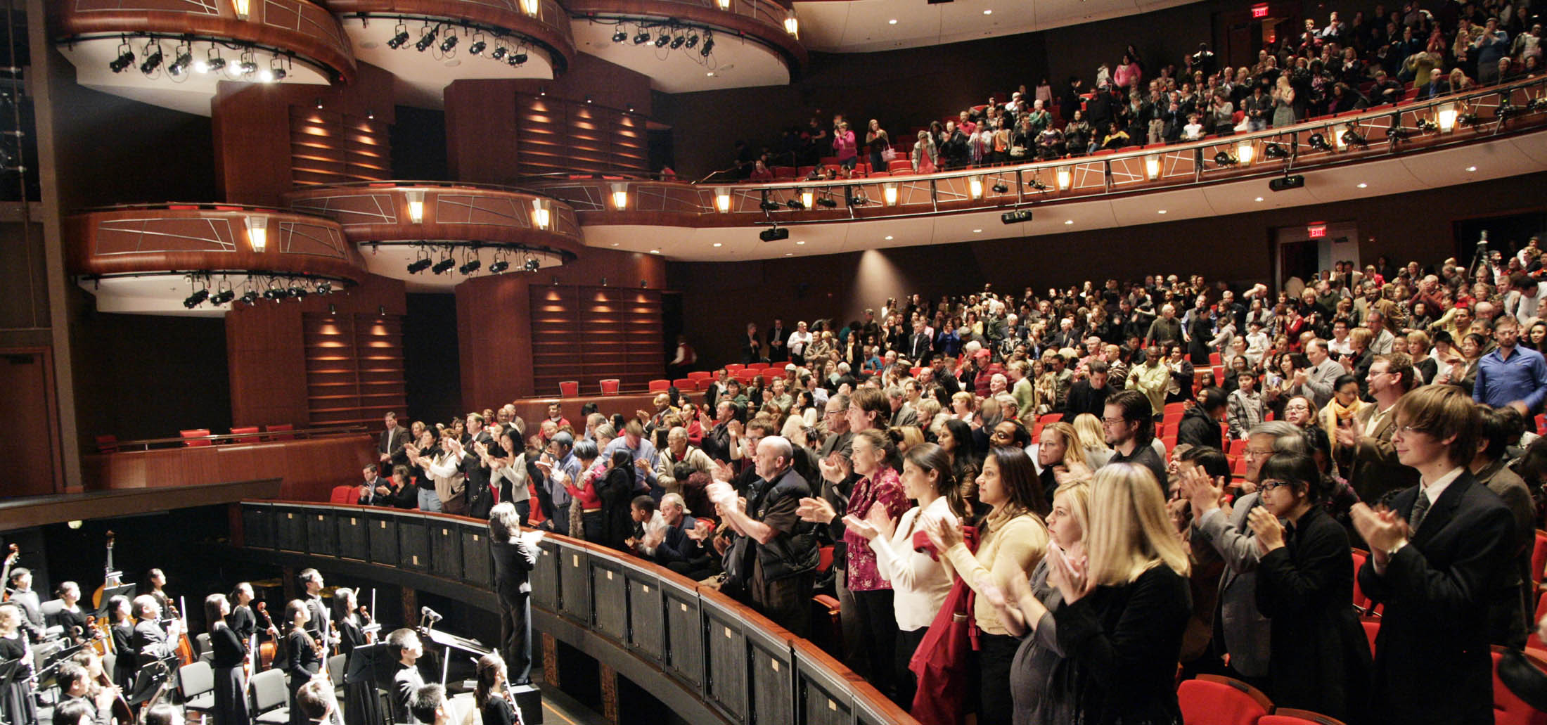 ![]() 二零一零年一月十五日晚,神韵艺术团2010年全球巡回演出在美国乔治亚州亚特兰大的第一场演出结束时,观众全体起立,向神韵演员鼓掌致意。 |