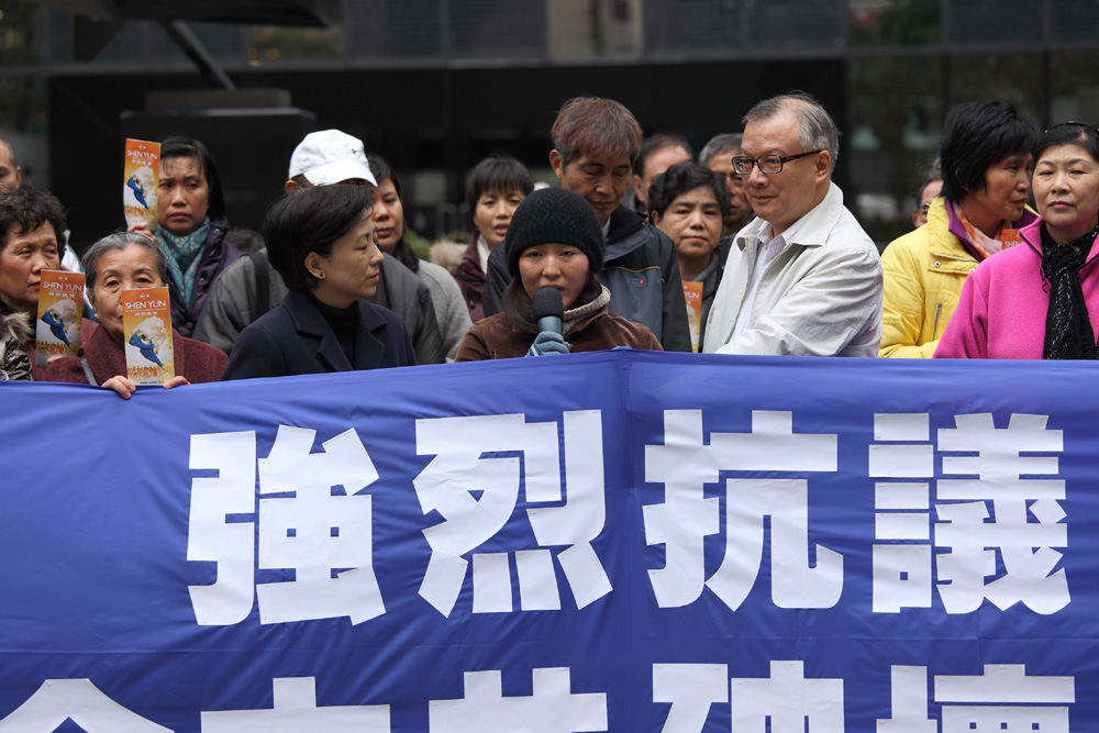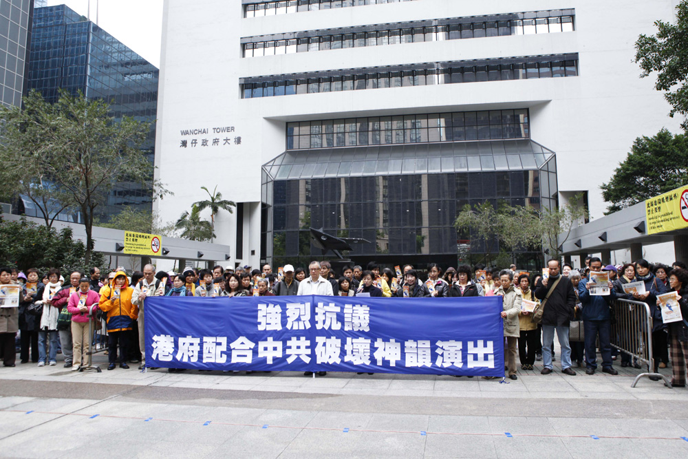 ![]() 图:来自香港各界及海外人士抗议港府屈从中共破坏神韵演出。 |
