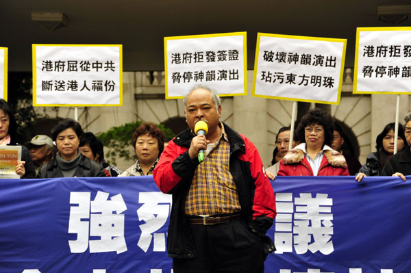 香港各界集会游行抗议港府胁停神韵演出(图)