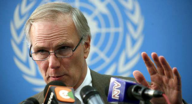 ![]() 联合国特派专员菲利普•奥尔斯顿先生(Mr. Philip Alston)在联合国总部的新闻发布会上 |
