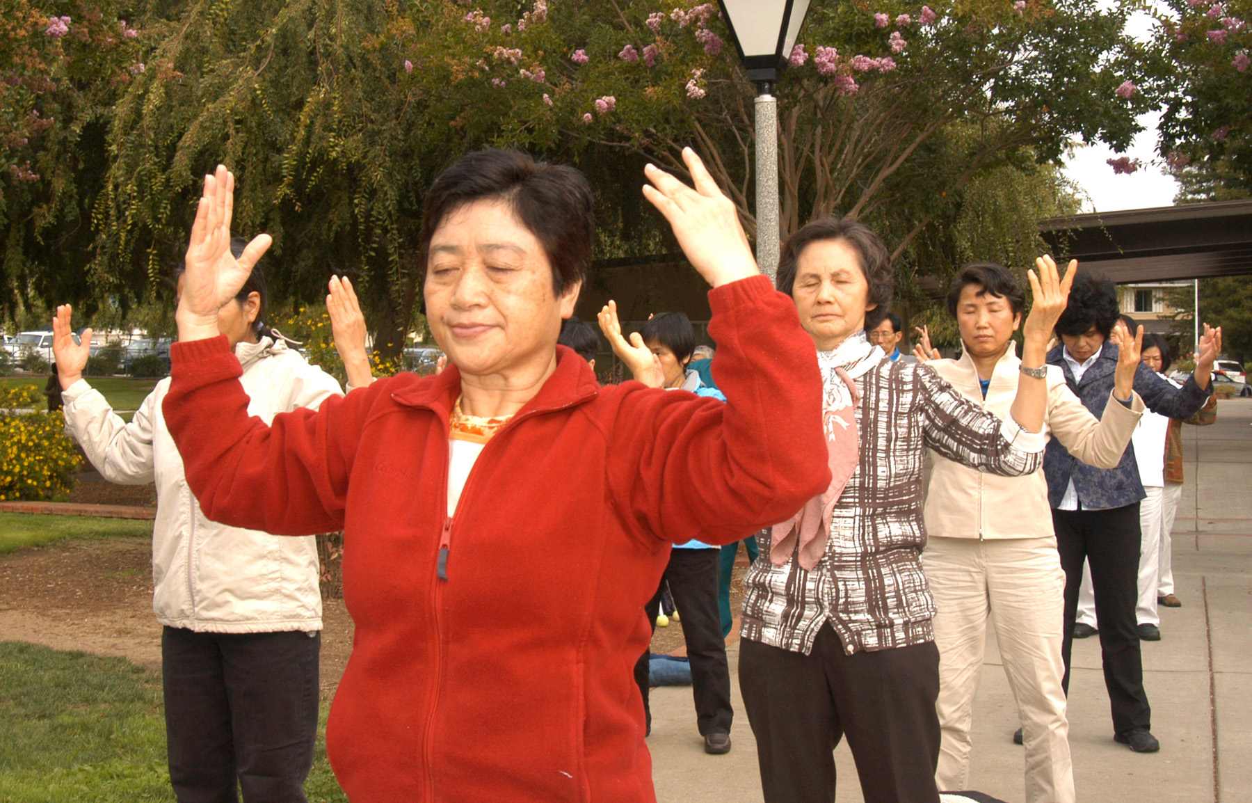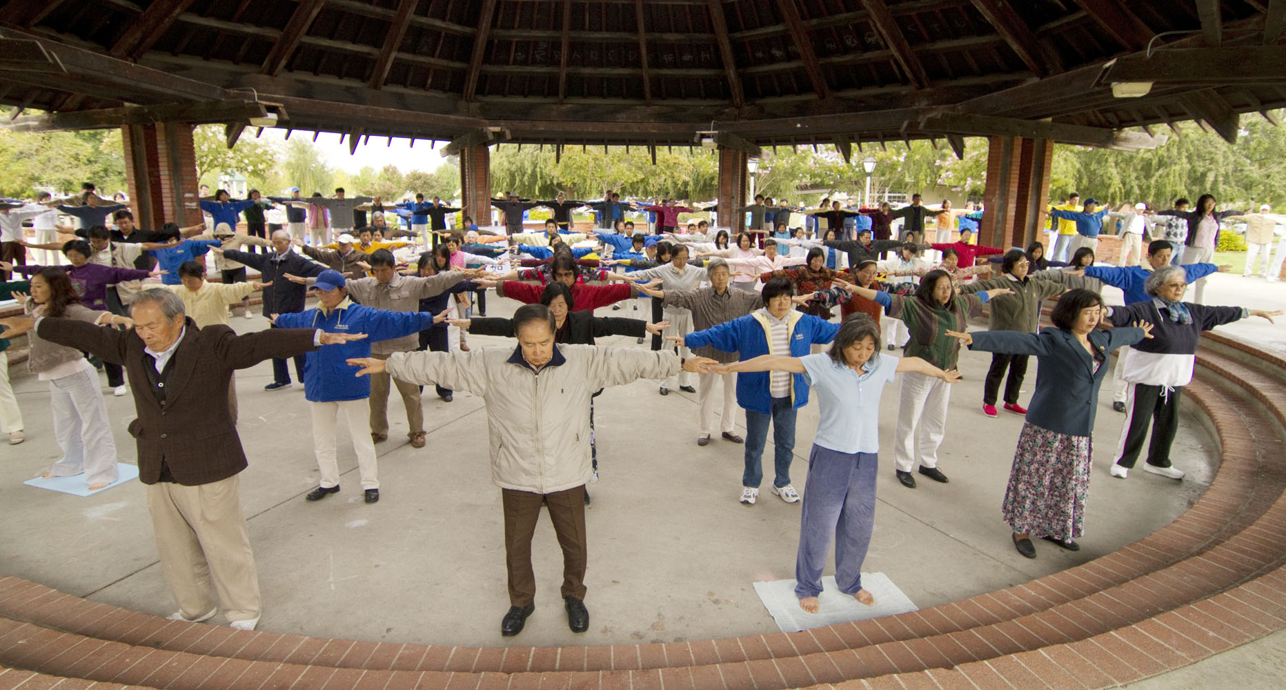 二零一零年十月三日早晨,旧金山法轮功学员集体炼功。
