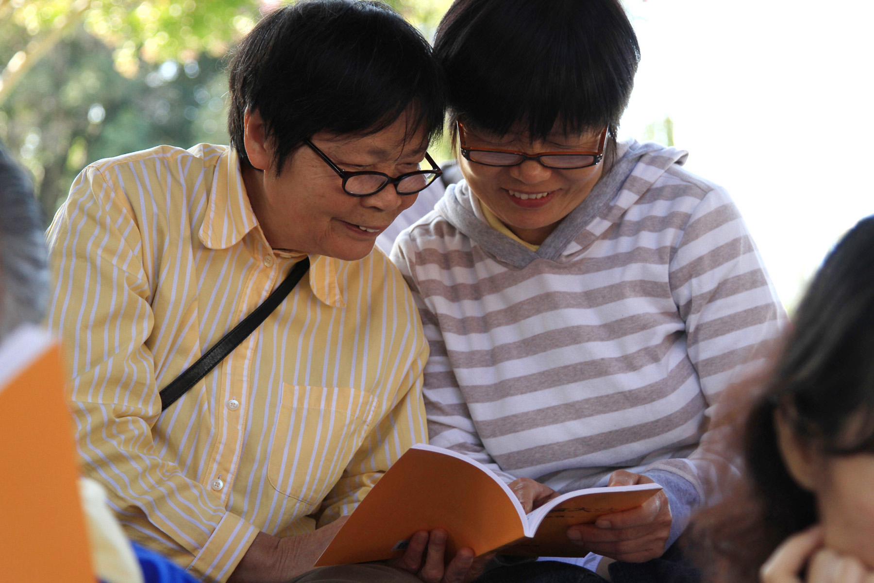 法轮功学员一起重温李洪志师父的经文《美国第一次讲法》