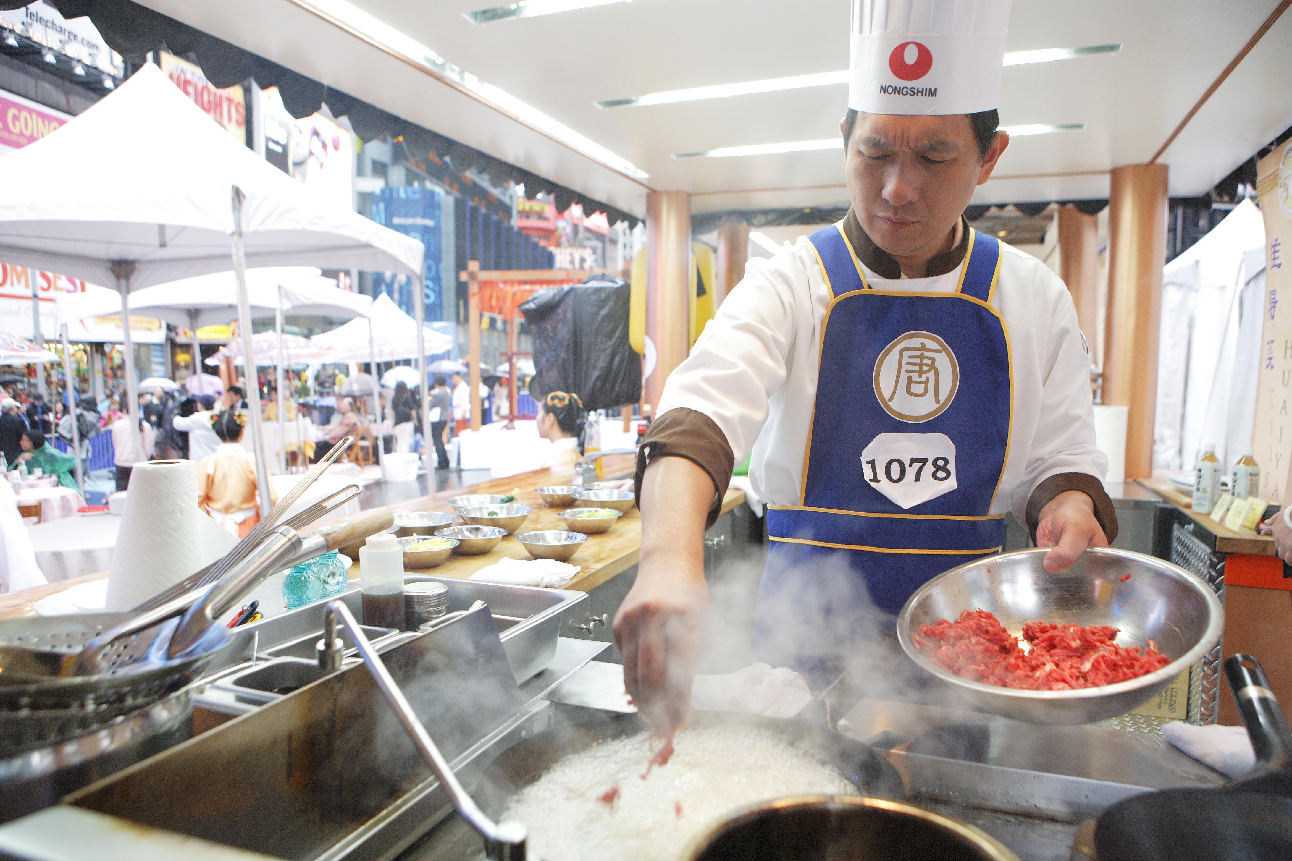 ![]() 第三届“全世界中国菜厨技大赛”将唐朝盛世的长安搬到了纽约时代广场 |