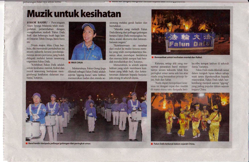 马来西亚马来报章《Sinar Harian》于二零一零年九月四日,以彩色图文并茂报导了学员在国庆月的演出,其中包括法轮功的介绍。