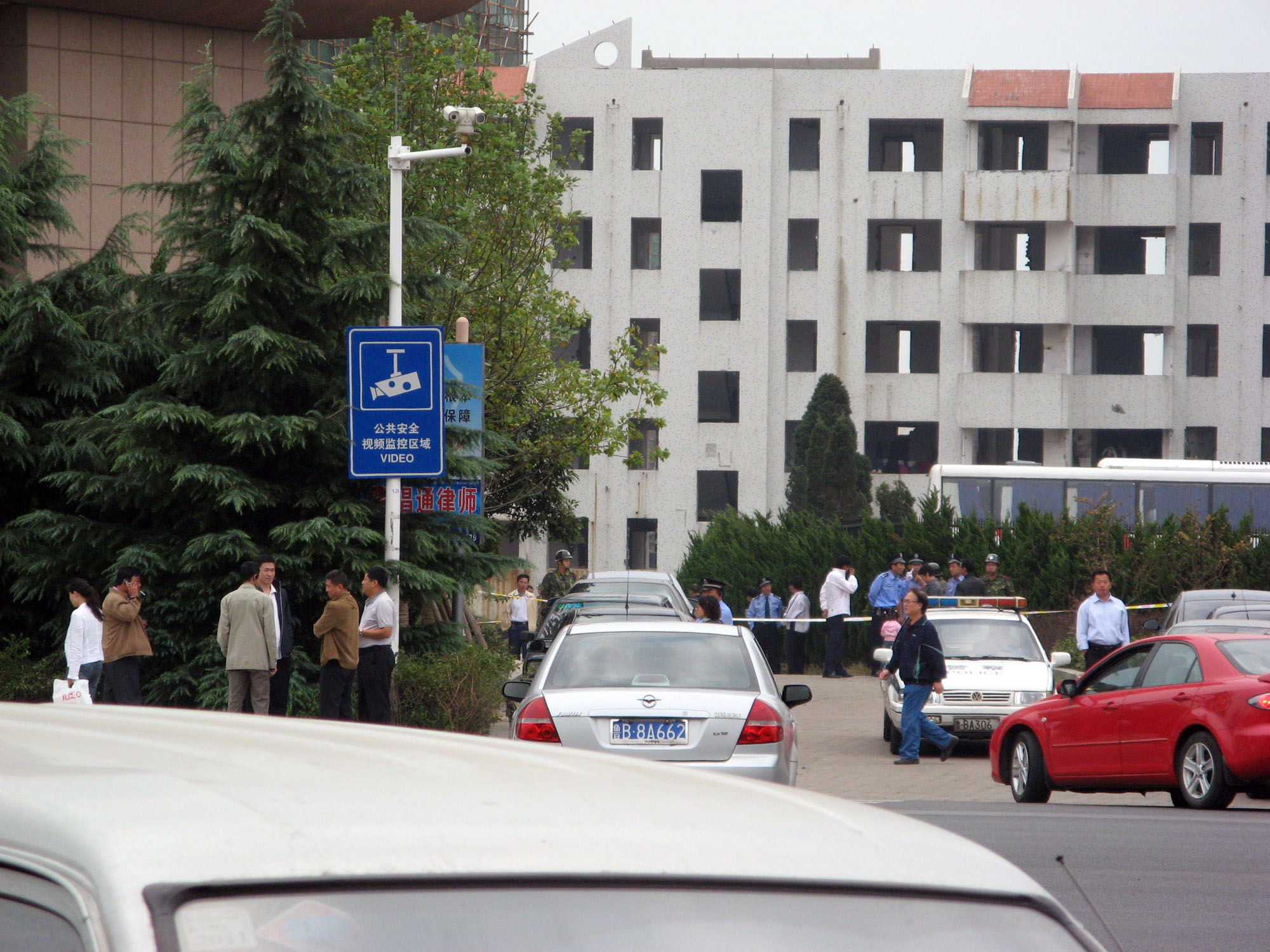 3、9月29日从7点半起,黄岛法院周围道路全部实行戒严,安排了上百名武警、公安、国安、法警布置在法院周围,北至黄岛区政府,西至黄岛海关大楼,对过往百姓进行封堵盘查,如临大敌。有人问起戒严原因,一律欺骗民众说法院内部有活动,根本不敢提开庭的事情。有民众要进入黄岛法院大楼办事,全部被禁止。