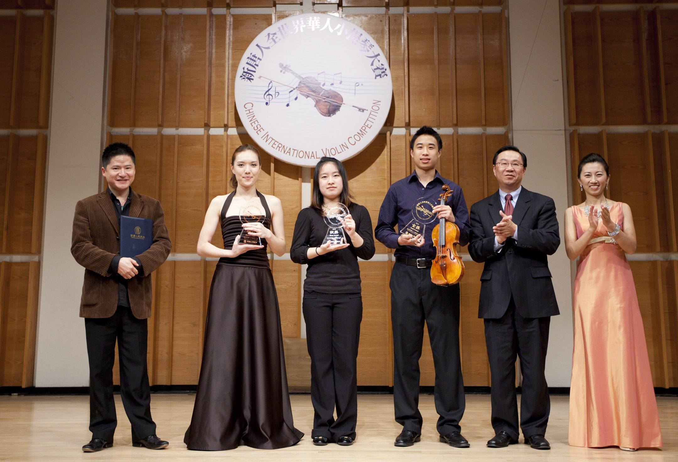 第三届“全世界华人小提琴大赛”获奖选手在台上领奖。