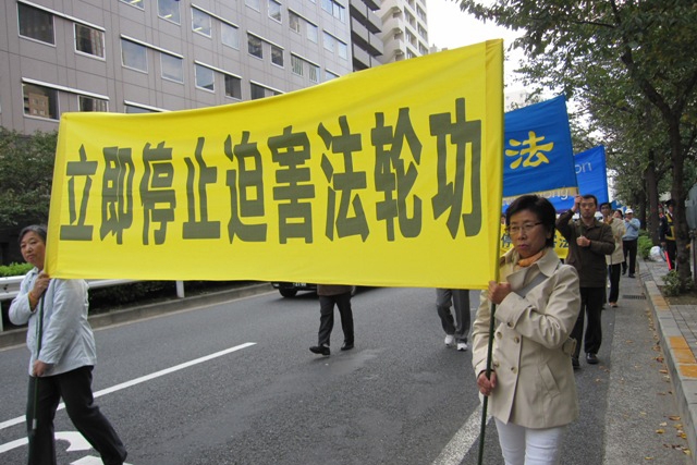 游行队伍经过东京市中心的繁华街道,街上的很多行人都驻足观看,接过揭露中共邪恶的真相资料并仔细阅读。人们对中共的独裁,居然对坚持信仰的法轮功进行那么残酷的迫害感到震惊。他们表示明白了为什么有那么多的人“三退”(退党、退团、退队)。有的人气愤表示,联合国为什么不对中共做出制裁。几位来自长春的中国留学生看到街头有这样的大型的游行感到惊奇,她们认真地听法轮功学员讲真相,表示会去了解更多有关法轮功和三退的情况。