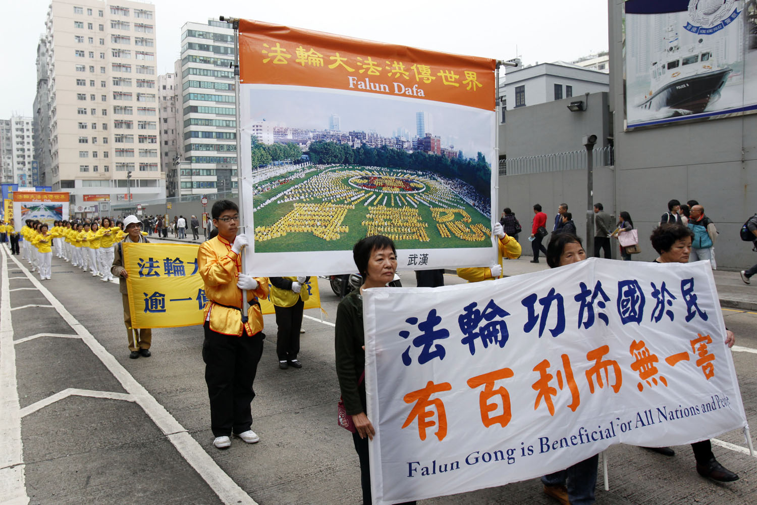 集会结束后,数百人的游行队伍下午二时半在天国乐团的领头下出发,途经旺角、佐敦和尖沙嘴等九龙区最热闹的街道,吸引许多本地居民及中外游人驻足观看。