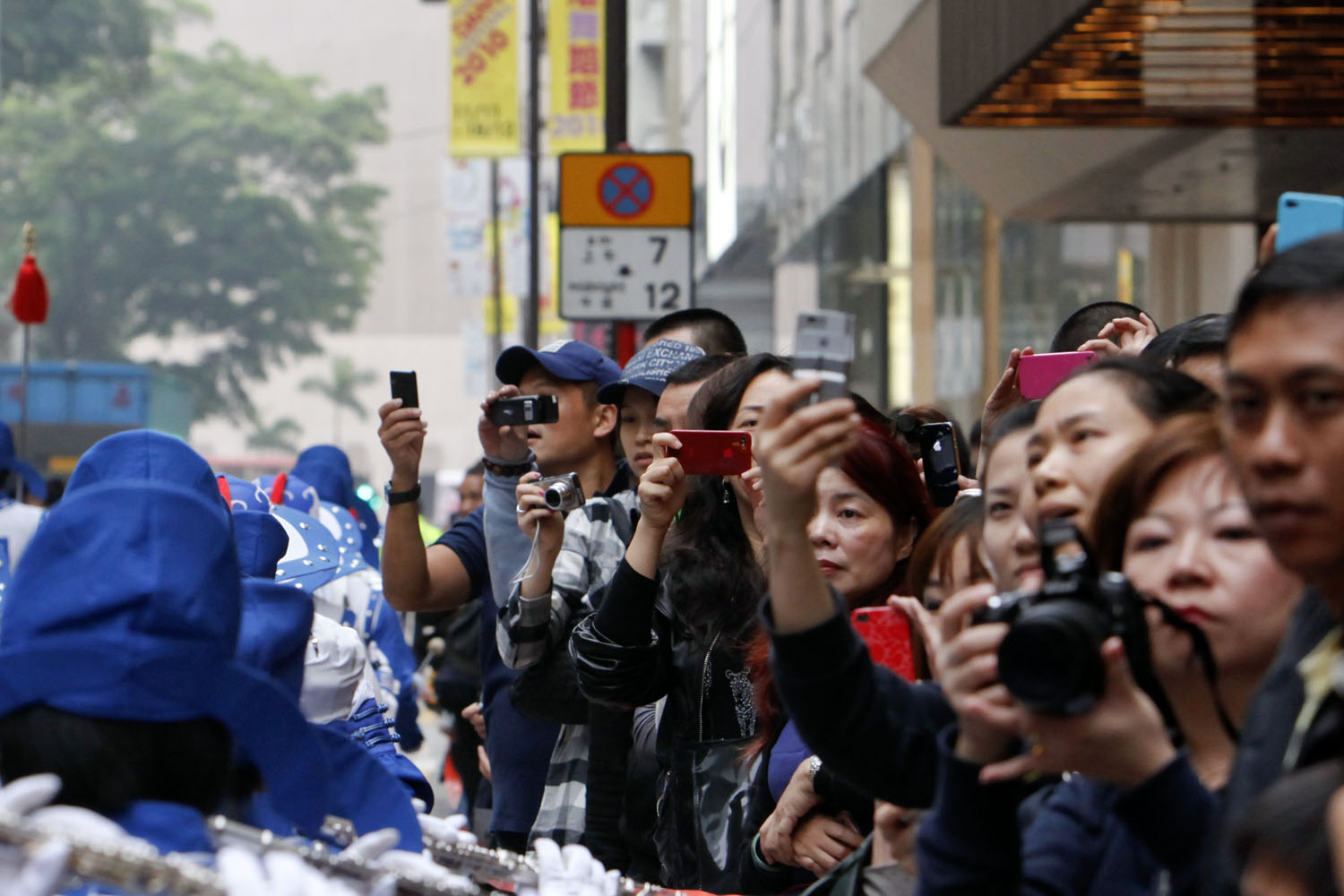 ![]() 游行队伍行进途中,许多中外游客纷纷拿起相机、摄录机拍照。 |