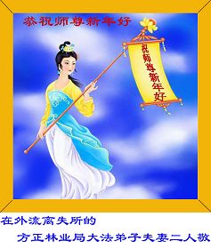 北京市空军某大院一家老俩口老年大法弟子向伟大慈悲的师尊拜年:恭贺师尊新年快乐!