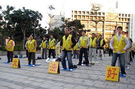 “立春”前后的台北地区,经常寒风凛冽,一月某日下午,一群大陆观光客聚在一零一大楼大厅等待游览车,一位中年女士指着横幅说:「哎唷你看,哪撑得来哟,风那么大呀,哎呀,真不容易呀,还能拿住。」一位说:「他们都是炼法轮功的,每天都有人来的。」这位女士惊讶的说:「他们怎么有时间天天在那儿呀?」一位回答说,他们不是一直在那儿,我每次经过的时候,看到人经常是不一样的,我想他们是轮着在那儿的,据我知道,他们也都是有工作的。这位女士恍然大悟地说:「是呀,今天是星期六周末嘛。」