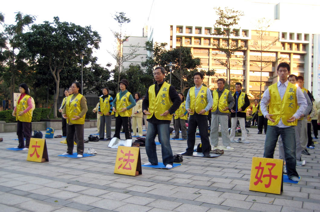 每日人数不等的法轮功修炼者,或在大楼对面的信义公园炼功,向世人证实法轮功的祥和与美好,或者在街道边沿举着横幅,告知世人罪魁元凶被起诉与通缉的消息,有的则在景点附近分发法轮功简介与真相材料,不辞辛劳,只为让世人明白真相,了解中共的邪恶本质后,做出正确的抉择,脱离中共邪党的操控与利用,因而能有个美好的未来。