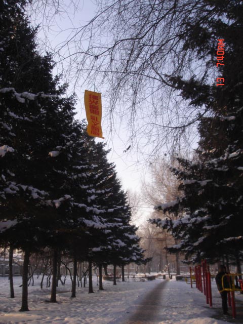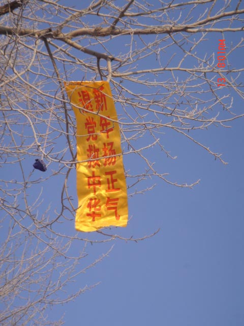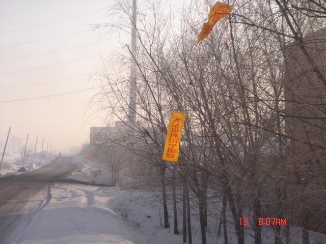 最热闹的大年三十本县城里的各主要街道、商场门前的电线杆上,及桥头出现的“法轮大法好”的真相标语。初一仍然还在。