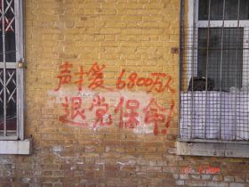 在城乡道路两边的电线杆上、围墙上、家属楼的墙上、大树上、集市上等出现喷漆和真相条幅标语——真相标语有:“天灭中共恶党”、“退党保命”、“声援六千八百万人退党保命”、“平反法轮功,法办江泽民”、“信仰无罪,停止迫害”、“佛光普照、礼义圆明”、“新年新气象,退党救中华”等。
