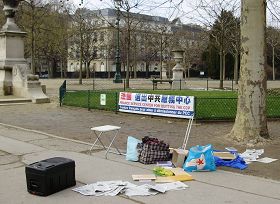 法国“退出中共服务中心”经由合法申请手续,常年在埃菲尔铁塔附近设立展板、放广播,揭露中共迫害百姓的事实,劝说每天众多来访的中国游客退出中共、共青团和少先队(三退),数千中国人已在此“三退”。