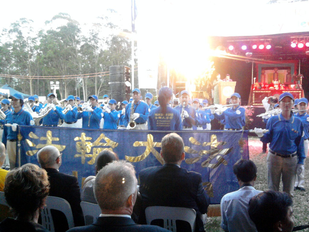 庆典活动在费尔菲德市的大型体育场举办,当地十几位议员和数十位嘉宾都参加了活动。身着亮丽制服的天国乐团在主席台前演奏了《法轮大法好》,和谐优美的演奏给全场观众留下了深刻印象。观众们不断鼓掌,争着拍照和摄像。天国乐团把法轮大法的美好和修炼者的精神风貌展示给了观众。