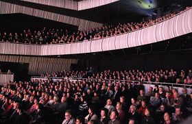 ![]() 观众凝神欣赏神韵巡回艺术团在比利时布鲁日的最后一场演出 |