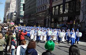 ![]() 法轮功学员组成的队伍给人们带来了格外惊喜 |