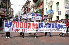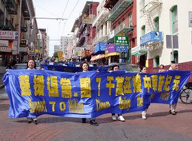 ![]() 游行横幅上写着:只有解体中共 才能停止迫害 |